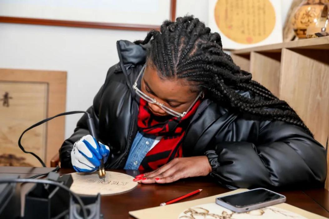 在湍口暖泉村,非遗文化“烫画”的体验活动更是让留学生们爱不释手、流连忘返。