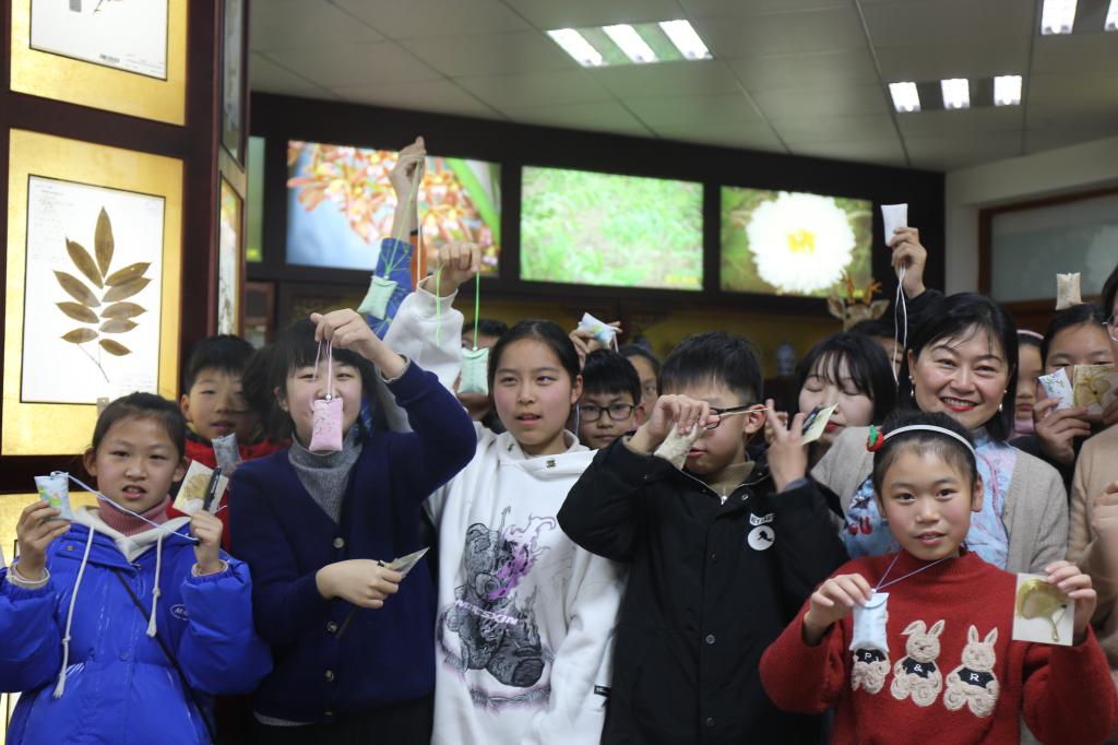 在药香扑鼻的中药标本馆里,40多名孩子们被300多种中药饮片标本、100多种浸渍标本和几十种蜡叶标本所吸引,迫不及待地开始辨认识别各种中药。迎面而来的古风和悠扬隽雅的古典音乐相互交织碰撞,伴随着沁人心脾的药香,很快就把同学们带入到了求知的氛围中。